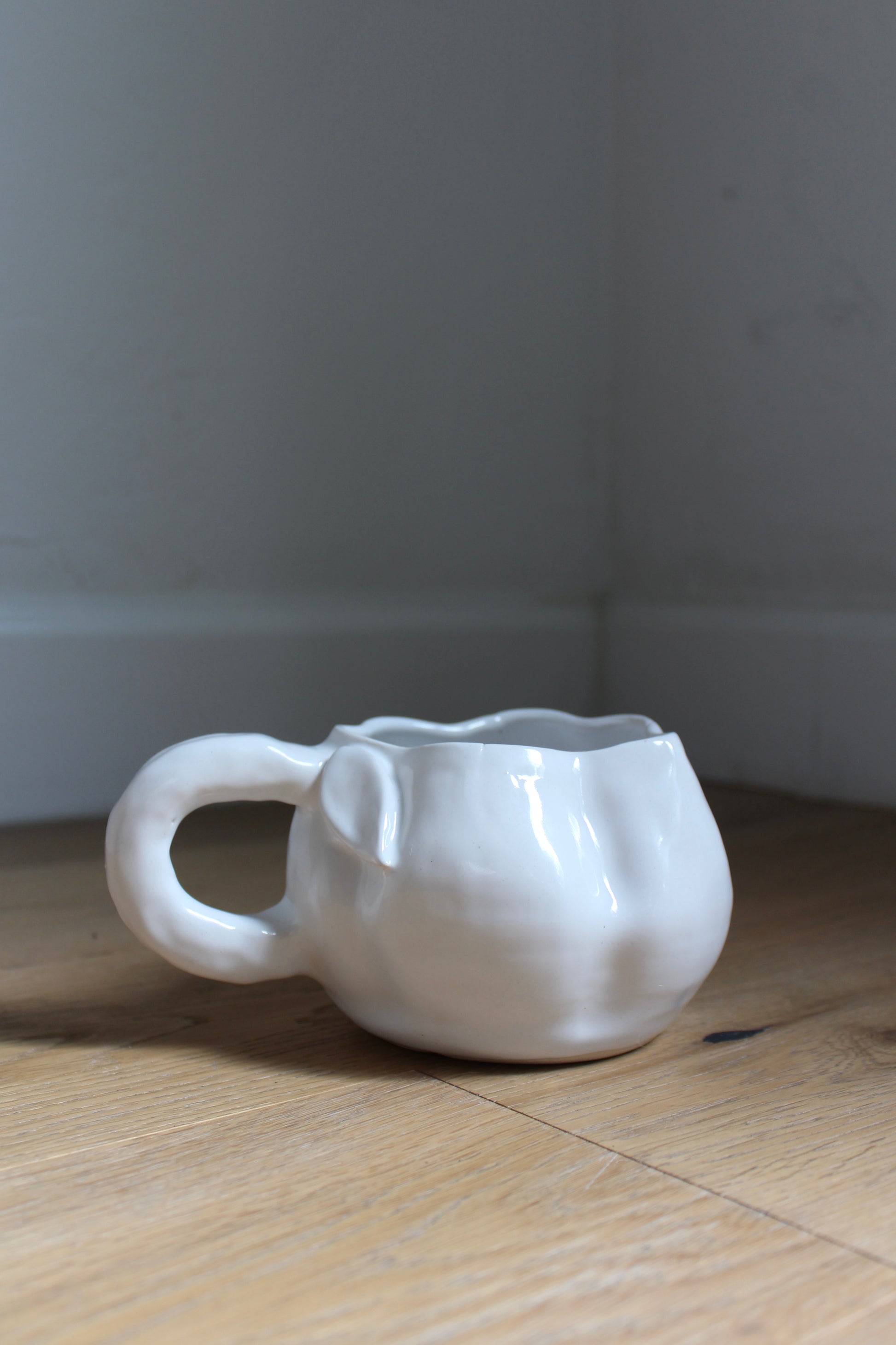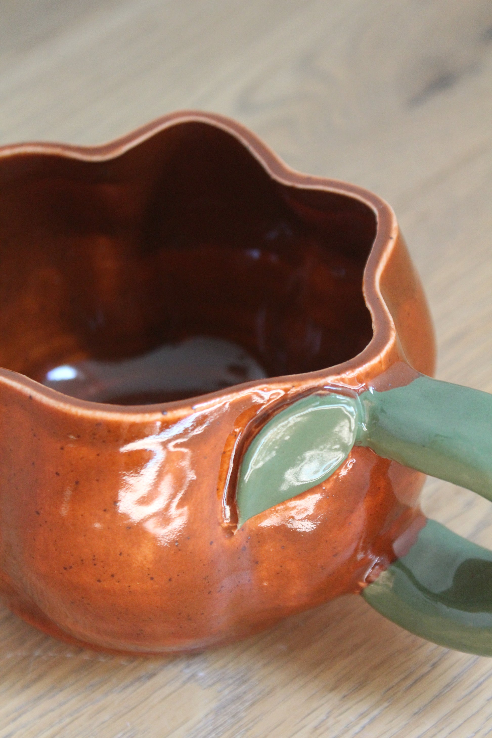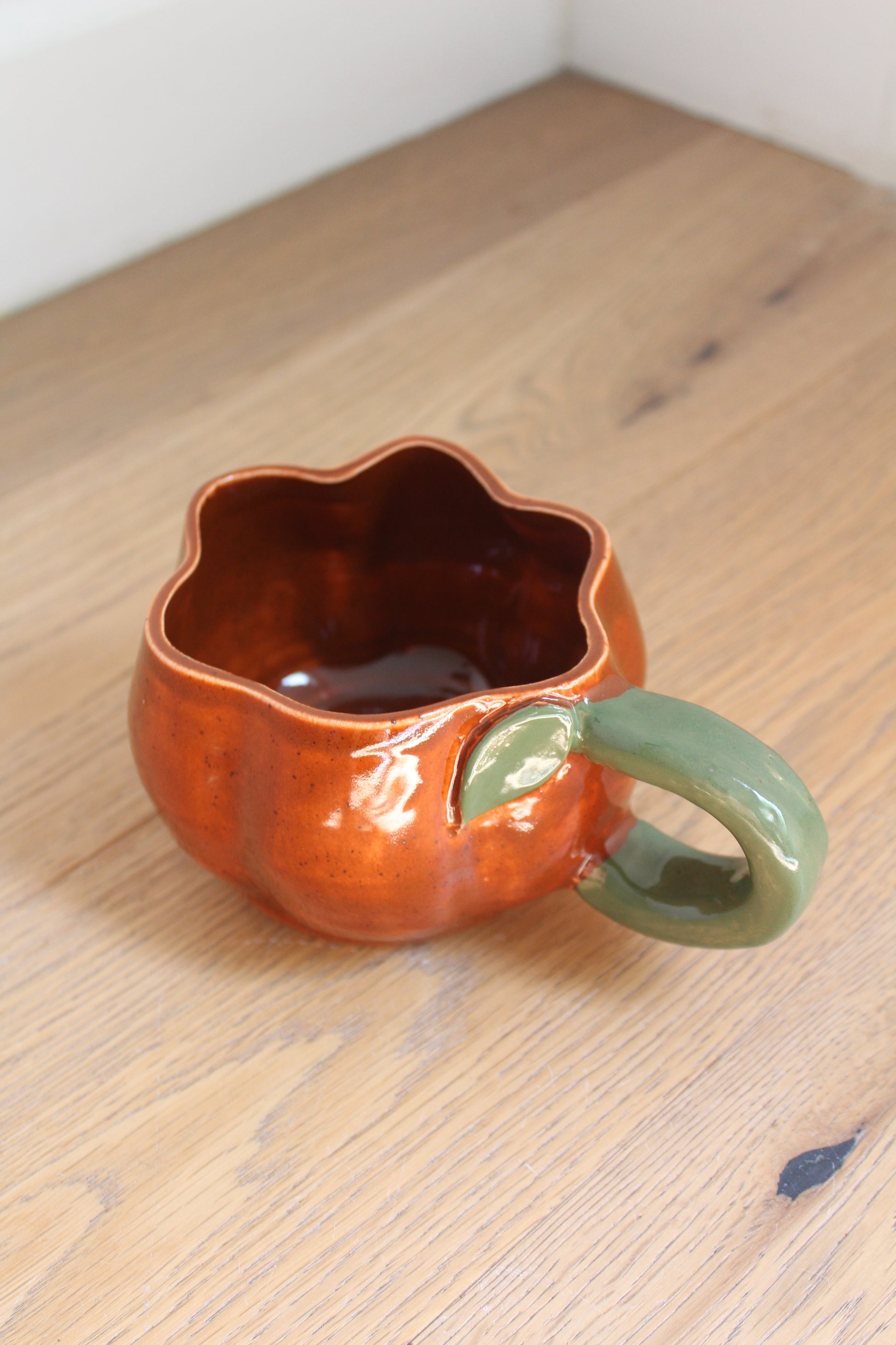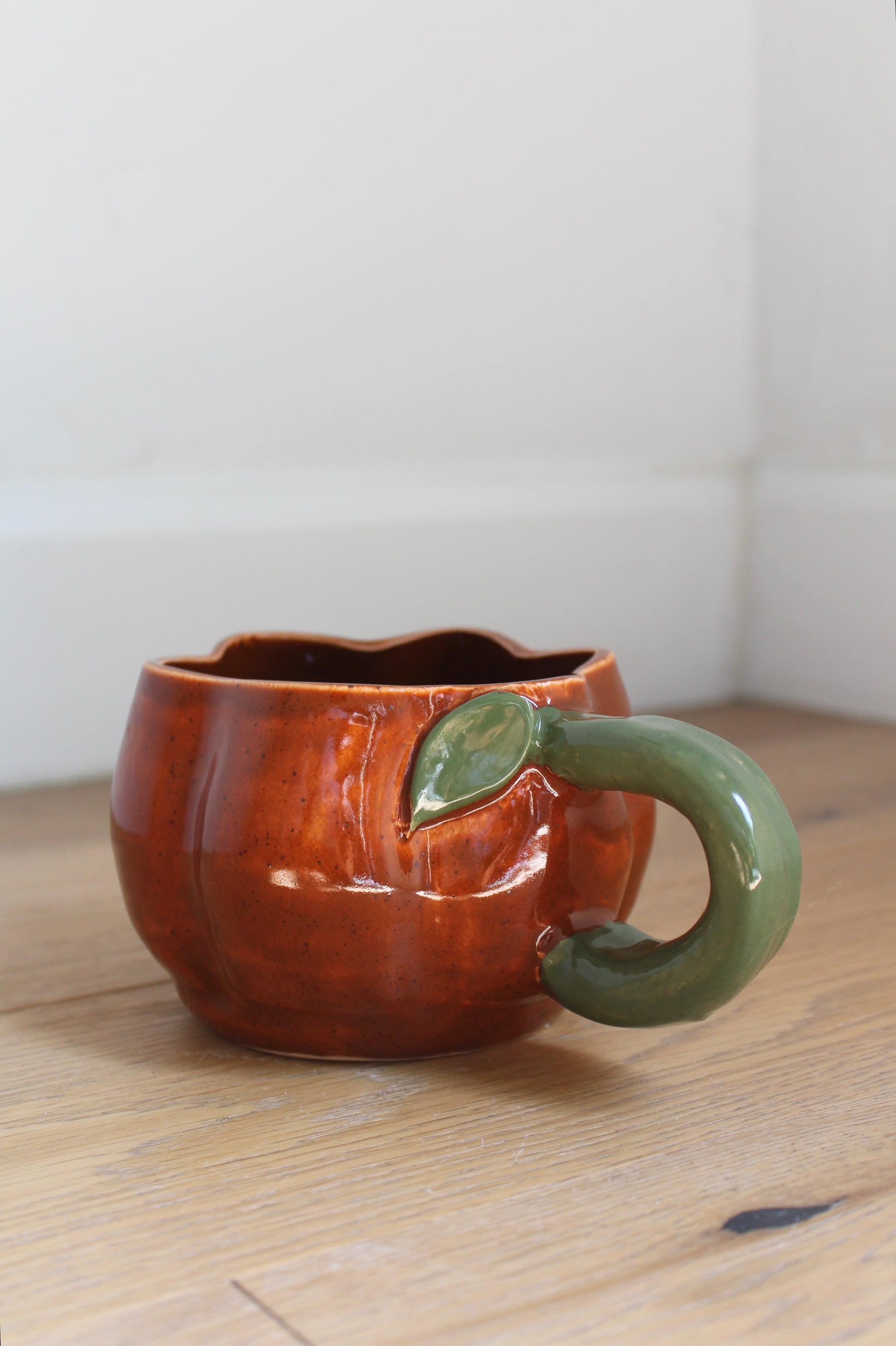 These pumpkin mugs are great for large cups of coffee or soup. They come with jack-o-lantern faces or plain pumpkins. They are hand build after the base is thrown on the wheel!