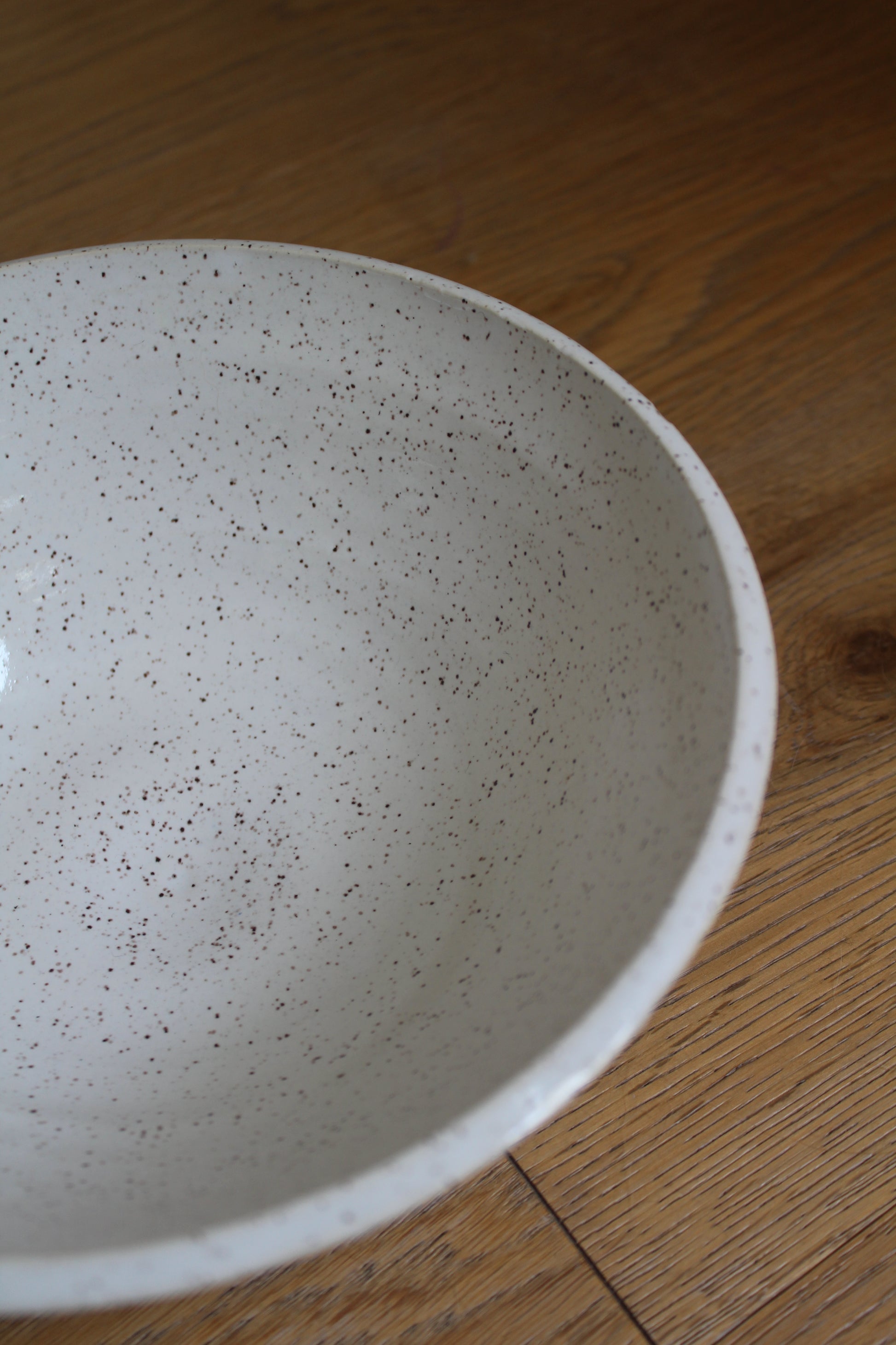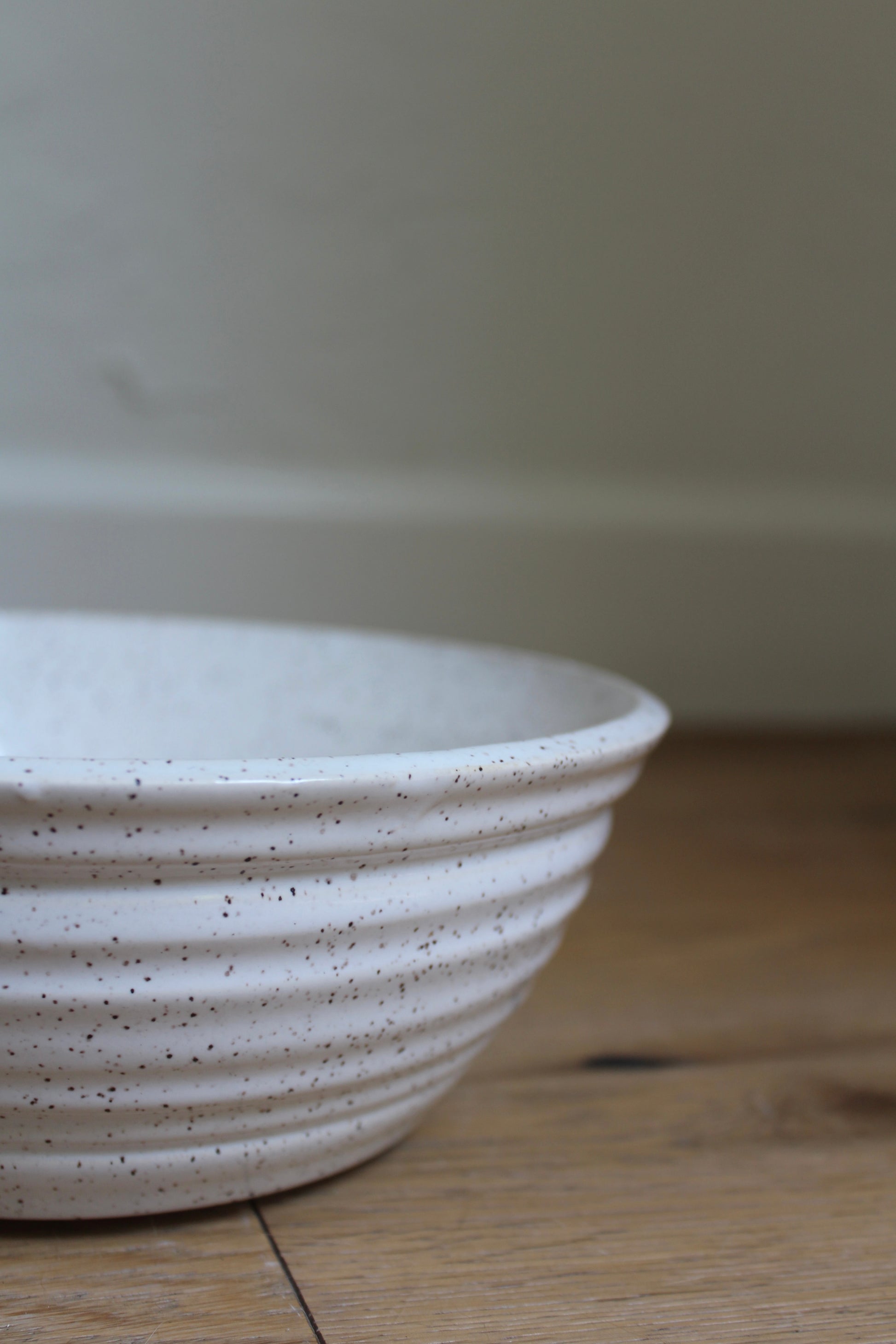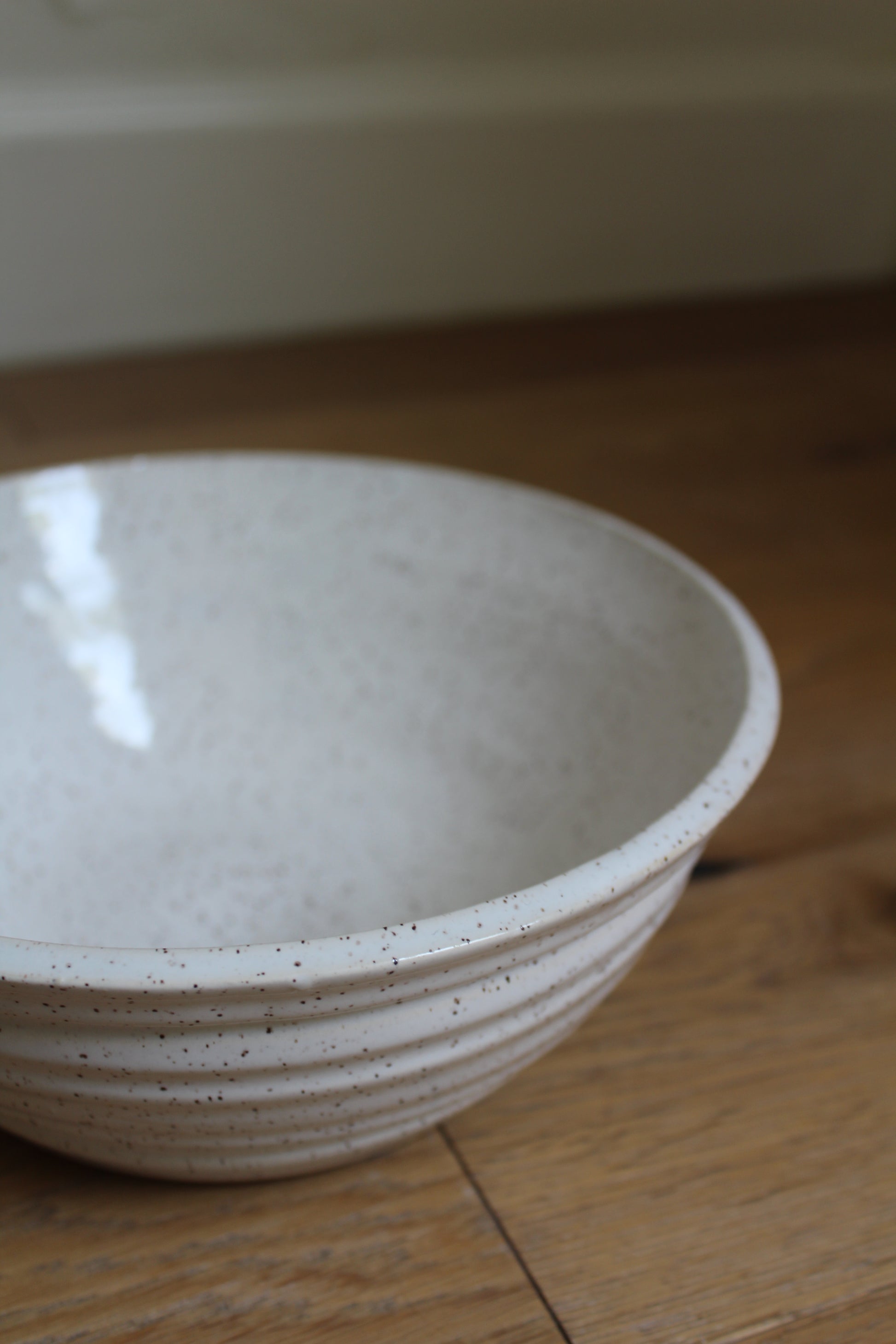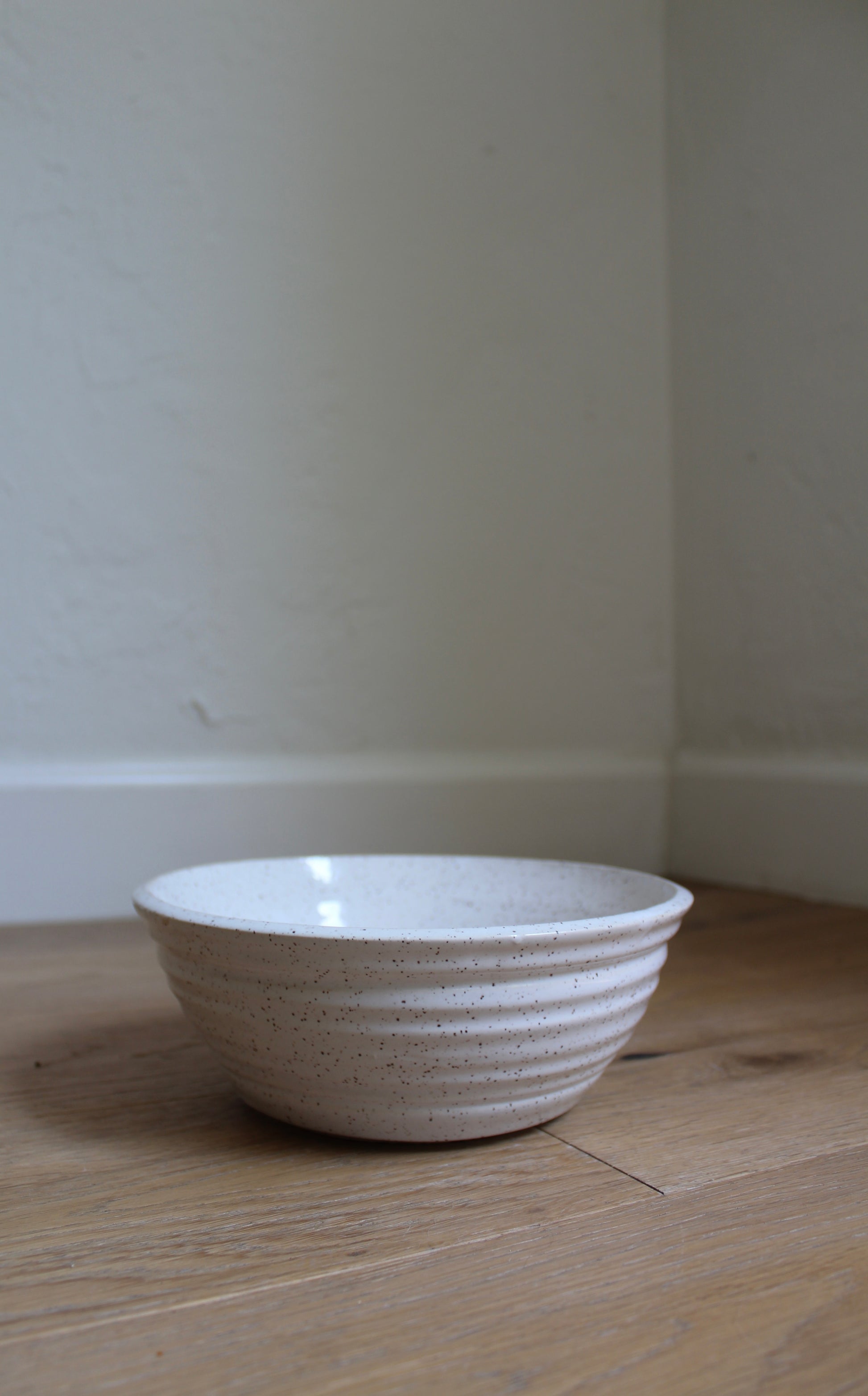 This bowl is made with speckled b mix clay. It has ribbing along the sides!